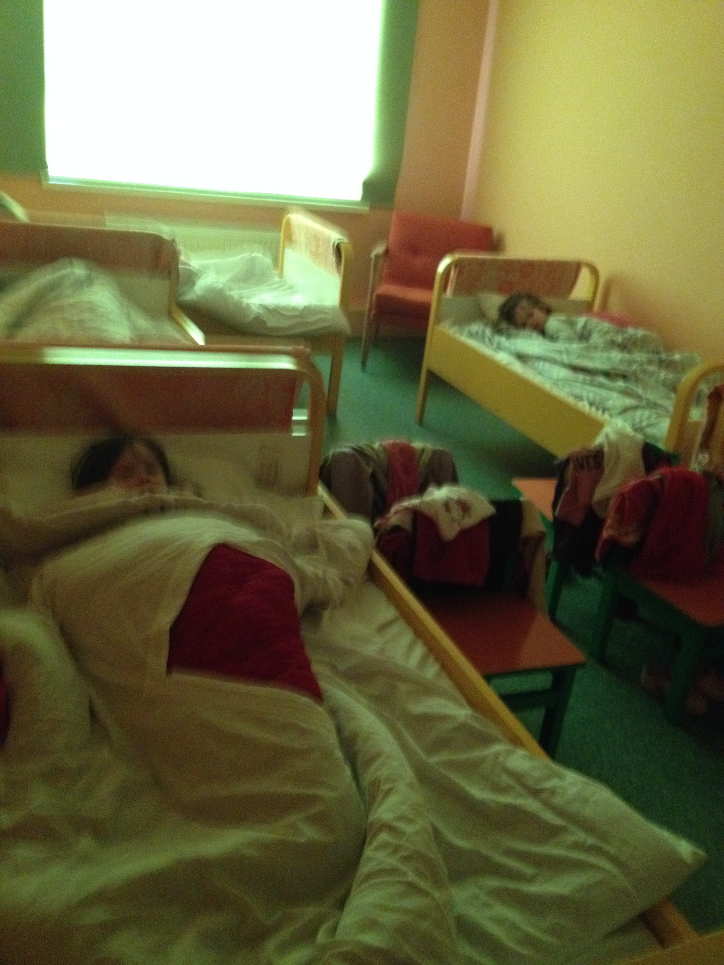 Penger vi har samlet inn var brukt til nytt gulvbelegg og oppussing av barnehagerom og tilsluttende vaktrom for sykepleiere. Vi måtte liste oss forsiktig for ikke å vekke sovende barn i barnehagen.