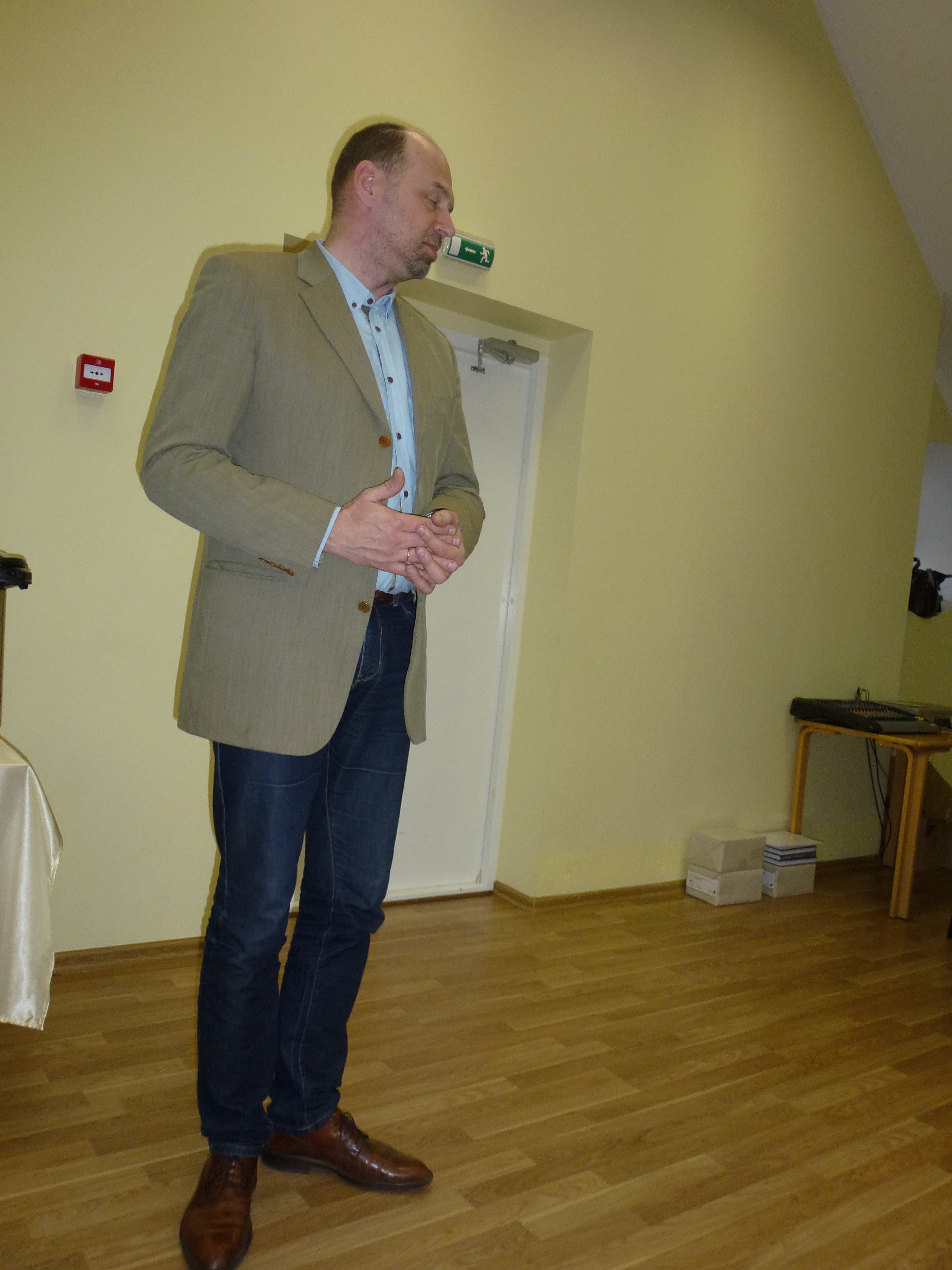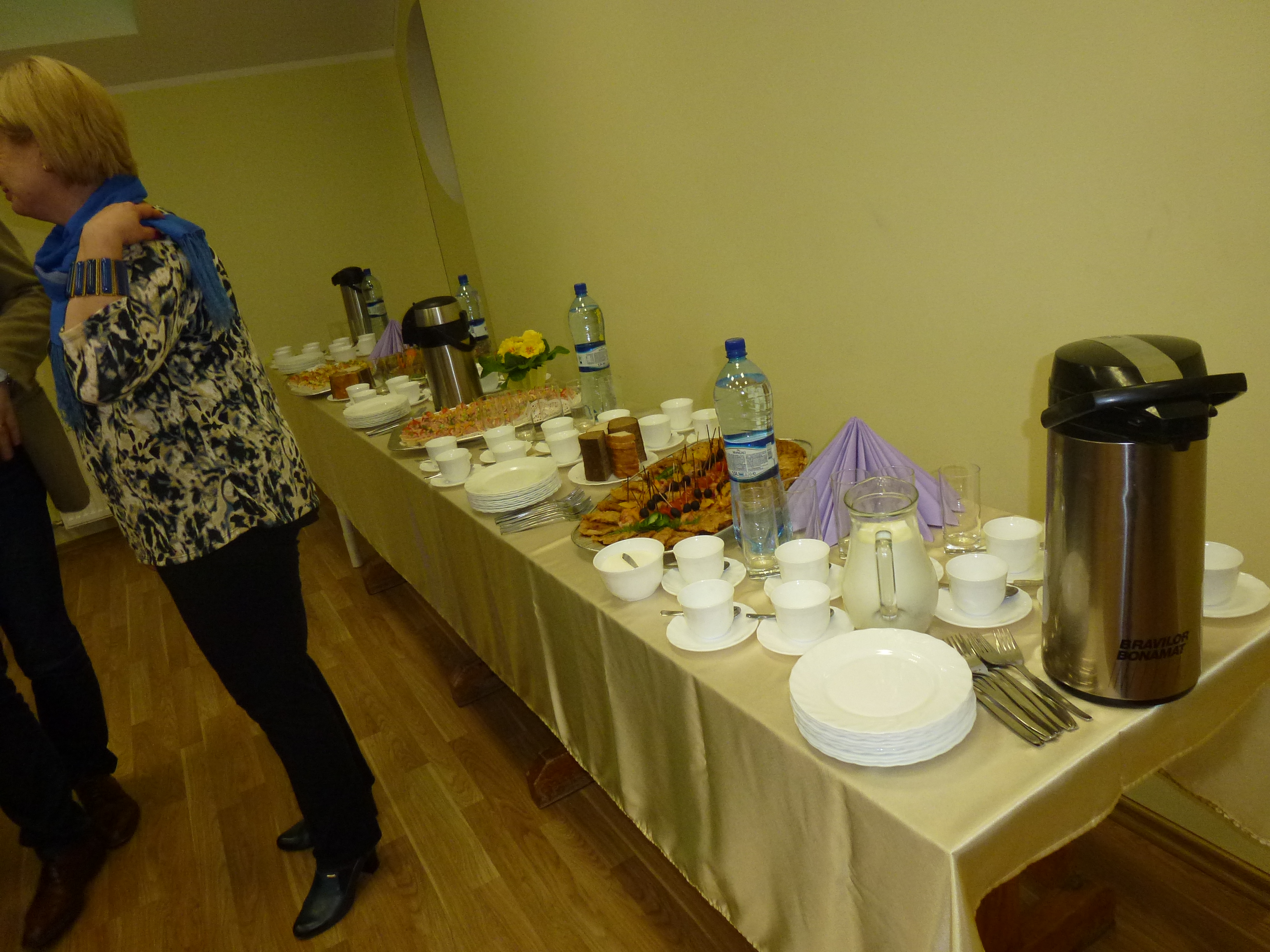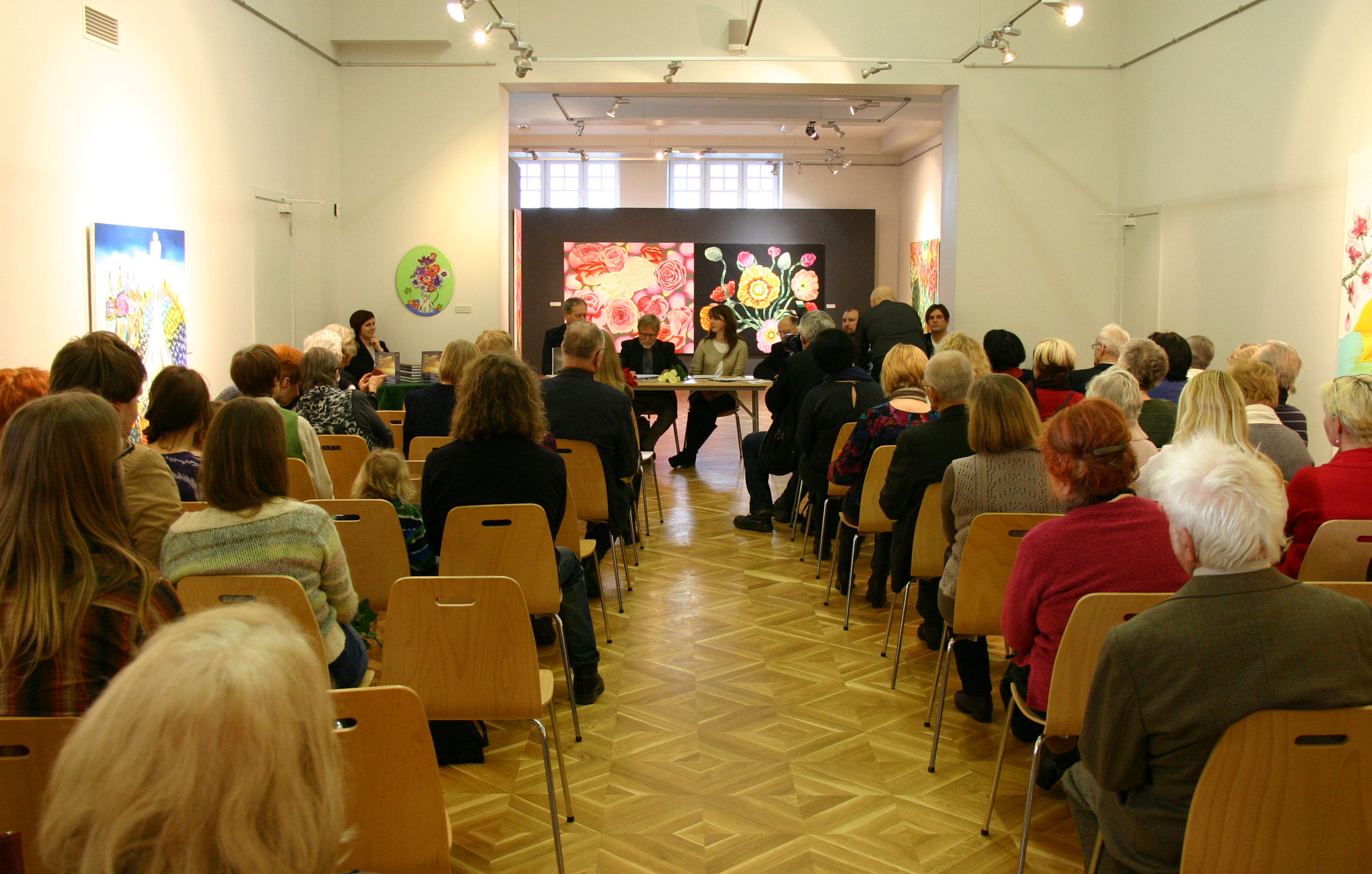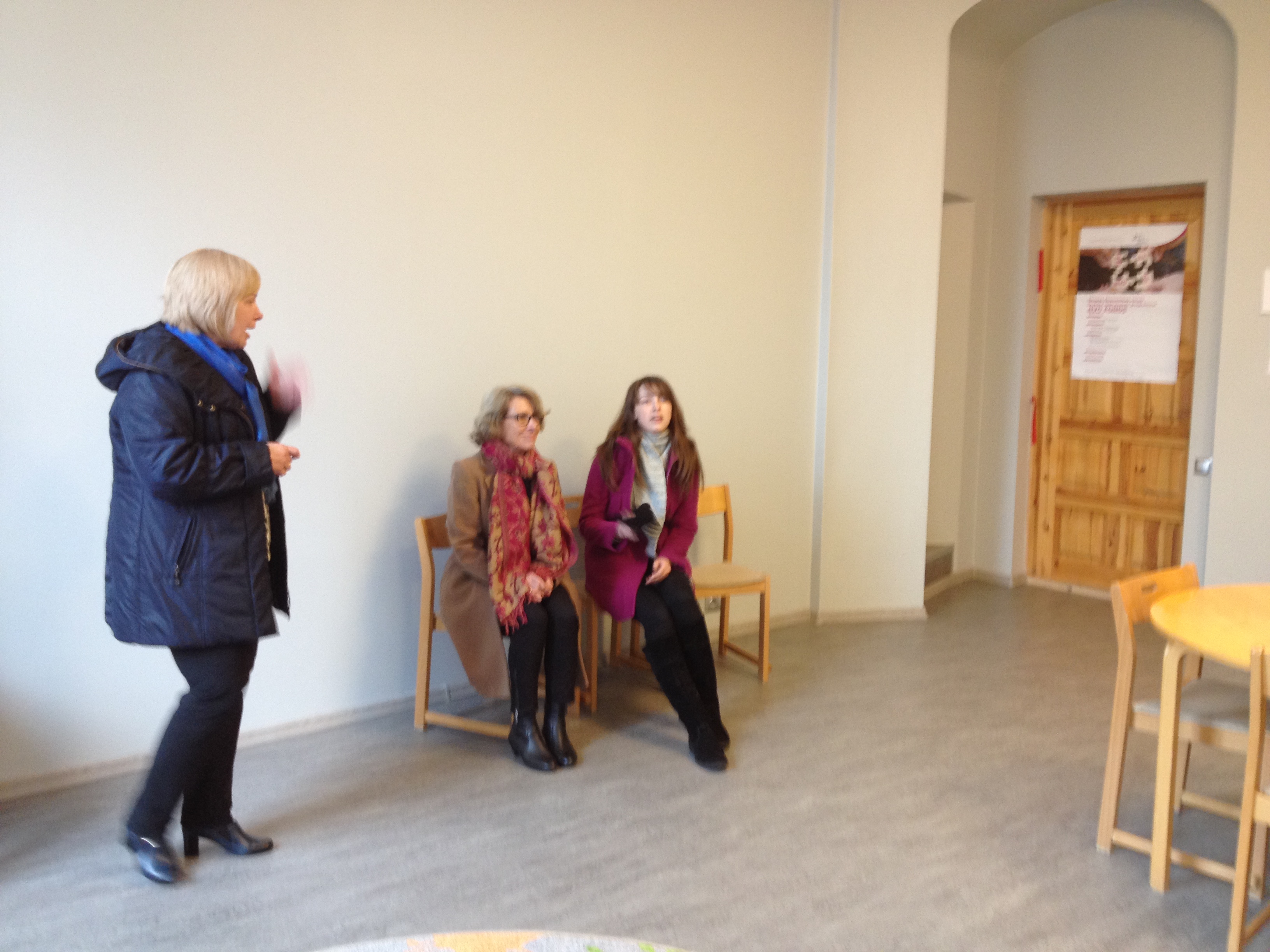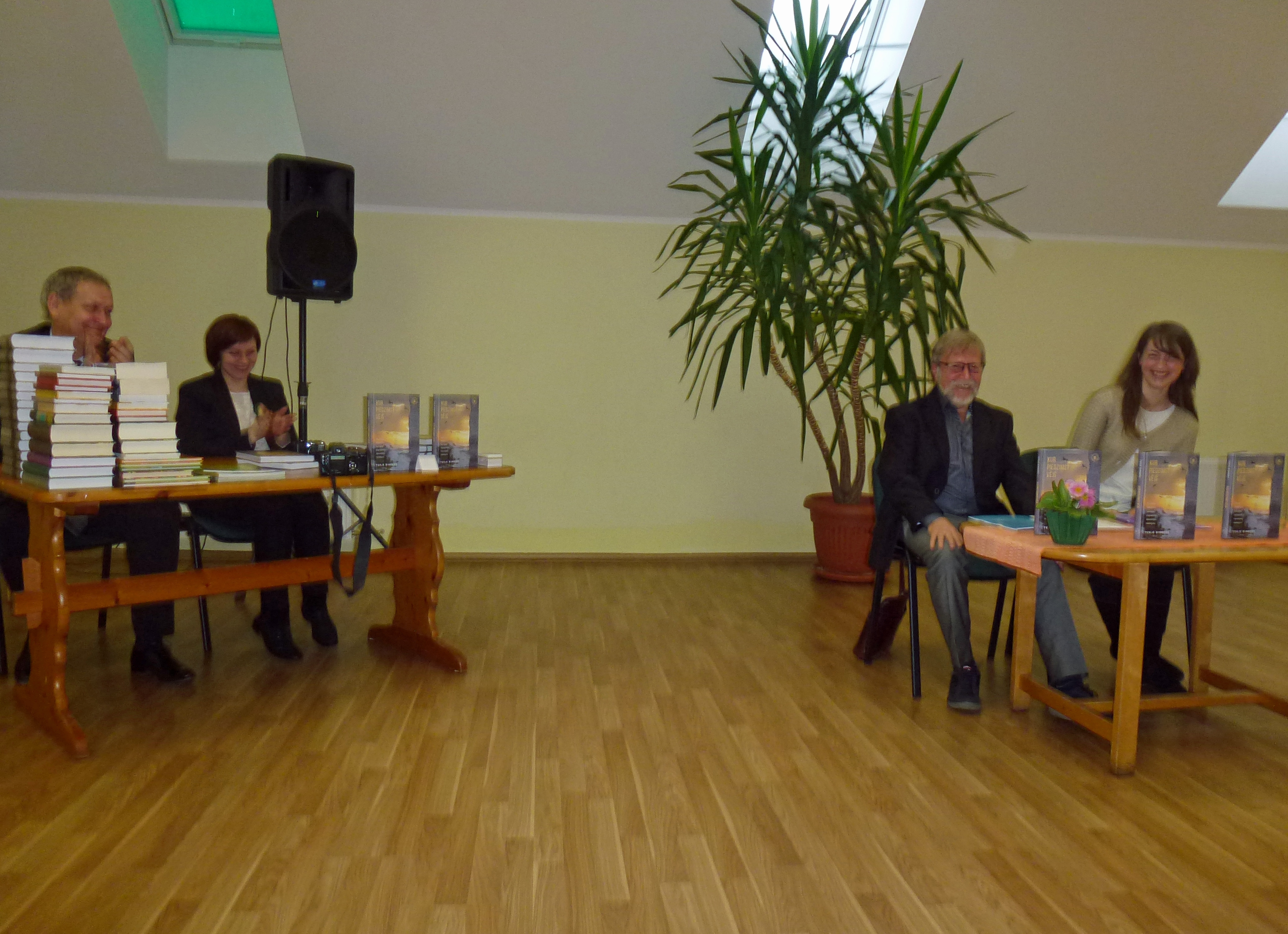 Jeg snakket i en halv time ved hjelp av tolk. Tolken var vår venninne Arta Veidmane Strele som også har oversatt halve boken. Det gikk forbausende bra å snakke på denne måten. En setning eller to, så oversettelse. Det gjorde at folk klarte å følge meg.