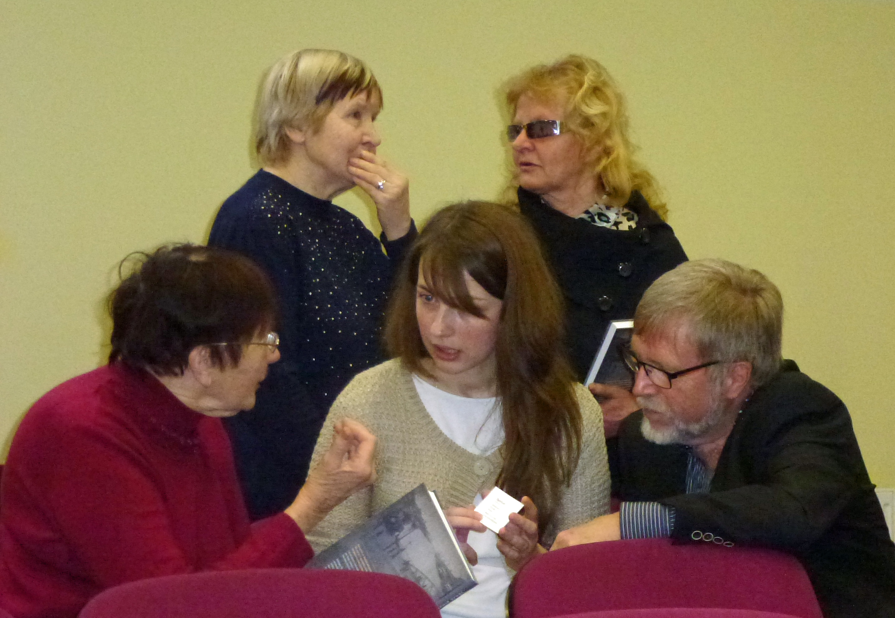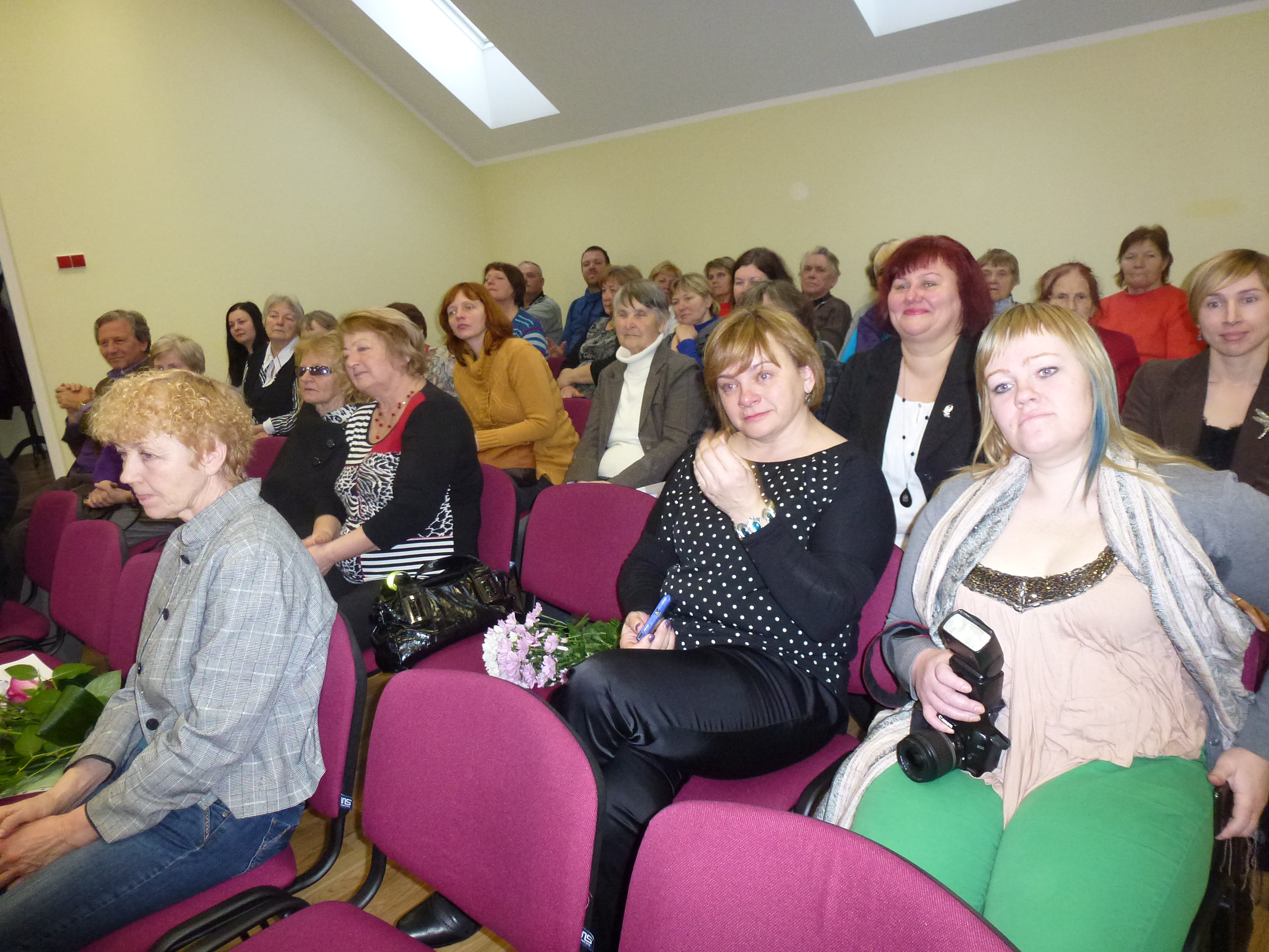 Jonhild og jeg leide bil og kjørte 20 mil til Liepaja. Onsdag 4/3 ble vi invitert til gymsalen på Purmsatiskolen, som vi kjenner så godt. Den ligger en times biltur fra Liepaja. Her møtte vi et kyndig og meget interessert publikum. Det er fra dette området min farmor kom fra. Publikum hadde gode spørsmål og kjente slekten min.